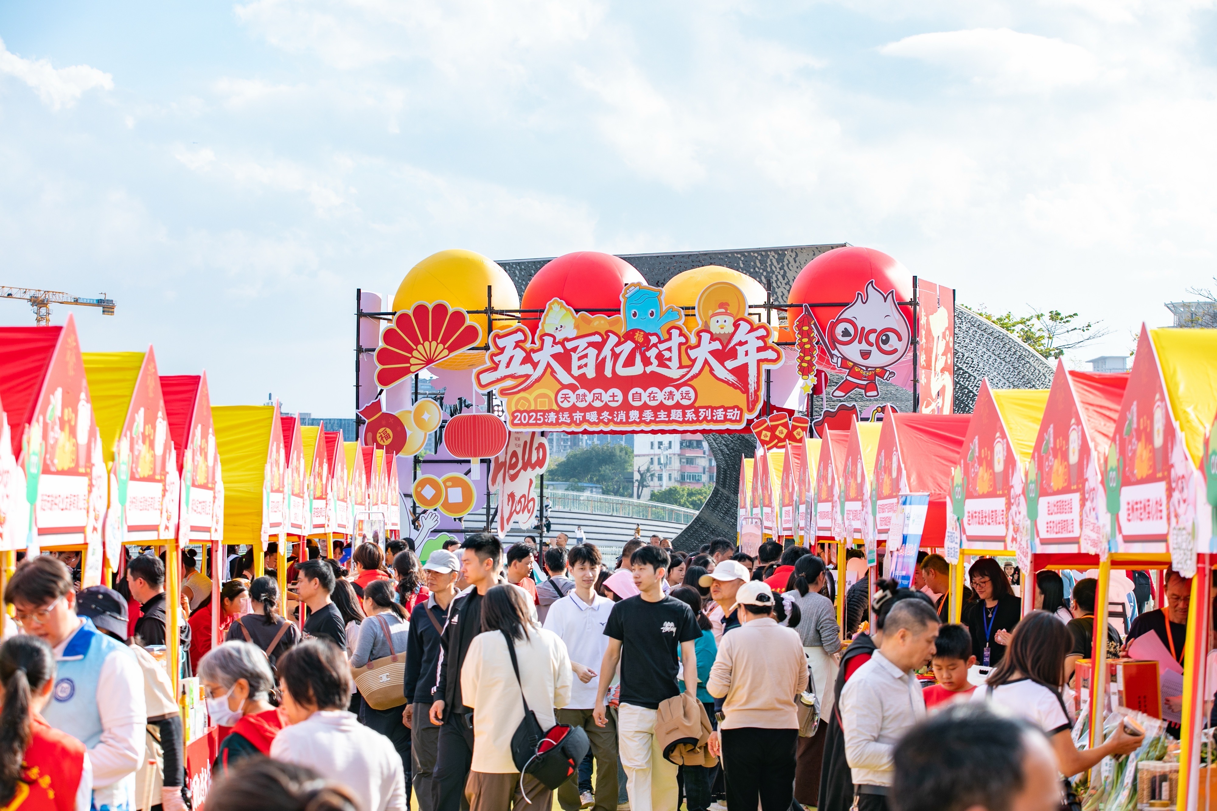 “五大百亿”过大年活动本年走进广州塔下,稠密湾区市民品鉴购买清远特质农产物。